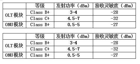 GPON系统光模块的要求共分为A、B、C三个等级,每个等级的光指标不一样。目前主要分为Class B+和Class C+,ONU侧的收光功率范围一般比OLT侧少1-2dbm左右。 两者区别如下: